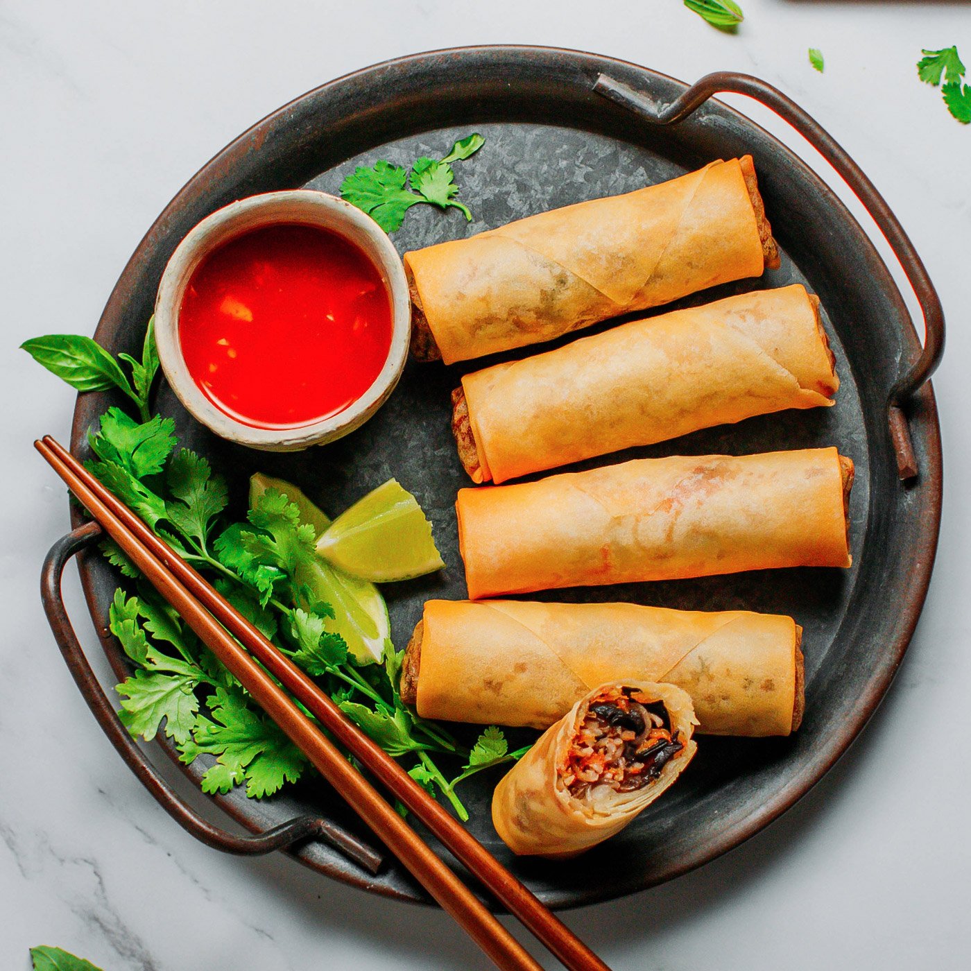 Egg rolls are a variety of deep-fried appetizers served in American Chinese restaurants. An egg roll is a cylindrical, savory roll with shredded cabbage, chopped pork, and other fillings inside a thickly-wrapped wheat flour skin, which is fried in hot oil.