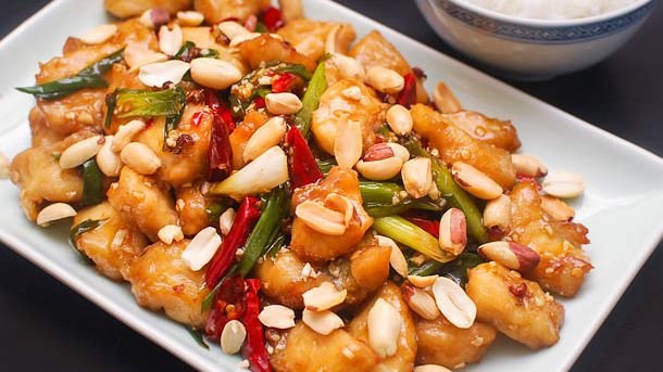 this variation on Kung Pao chicken, firm white-fleshed fish such as catfish or tillapia is marinated with soy sauce and white pepper, then deep fried until golden. Afterwards, it’s stir-fried with classic Sichuan flavors: spicy dried chilies, mouth-numbing Sichuan peppercorns, and garlic.
